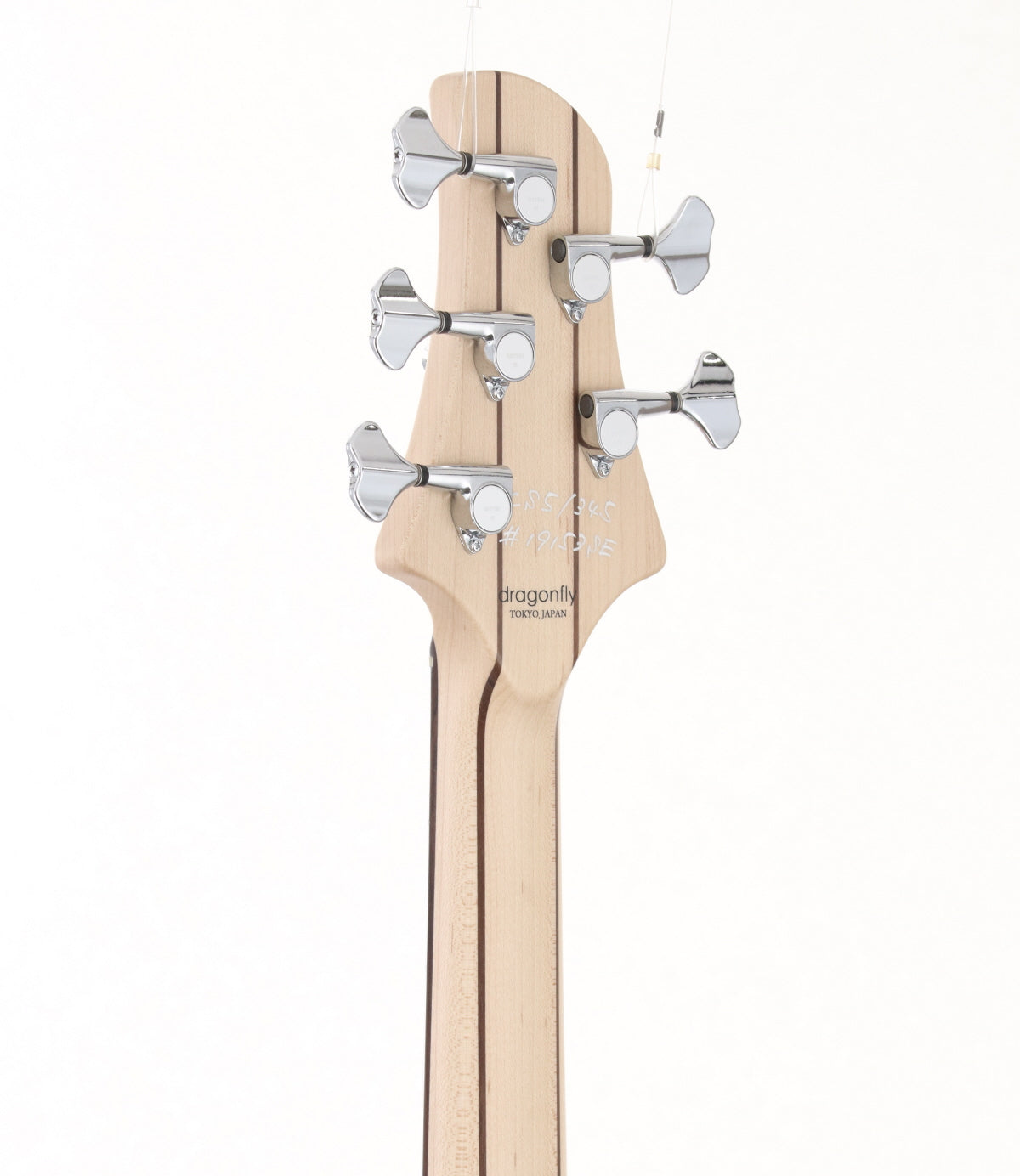 名だたるミュージシャンからも絶大な支持を集める国産ギター/ベースブランド"ドラゴンフライ"。ボディ材にはエキゾチックなタモトップにアッシュバックを採用、ネック材にはメイプル/ウォルナットの5Pネックにエボニー指板を採用しています。 ネックスケールは34.5インチスケールを採用、ロングとスーパーロングの中間的なサイズ感でしっかりとしたテンションを確保します。ナット幅は実測で約47.6mm、フレットは優れた耐久性のオリジナルステンレスフレットを搭載しています。オリジナルのピックアップ&プリアンプで太く芳醇なサウンドを演出、コントロールは『Vol,Balance,Tone,3Band EQ,On/OFF SW,MID FRQ SW』となっています。