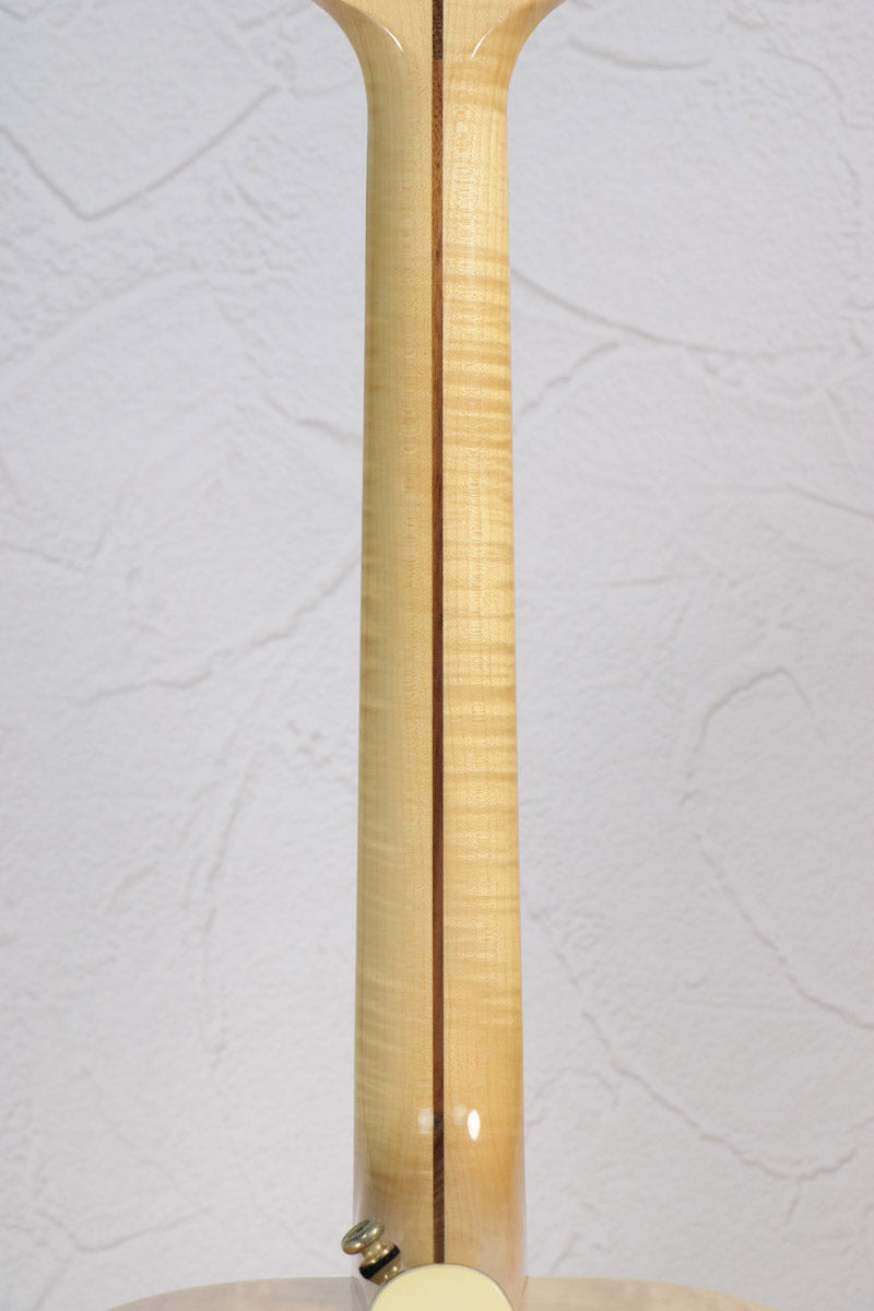 入荷時よりネックジョイント部分にストラップピンが増設されております。ボディにナチュラルカラーのおかげもあり、ダメージはさほど目立ちません。比較的キレイなコンディションを保っております。フレットには全体すり合わせが行われており、目立つ弦跡等はありません。また残りは約7割程となっております。現状弦高は12フレット6弦側で約2.5mm、1弦側で約2.0mmで調整されております。ブリッジサドル残りはブリッジ台上から見て6弦側、1弦側ともに約2.8mmとなっております。