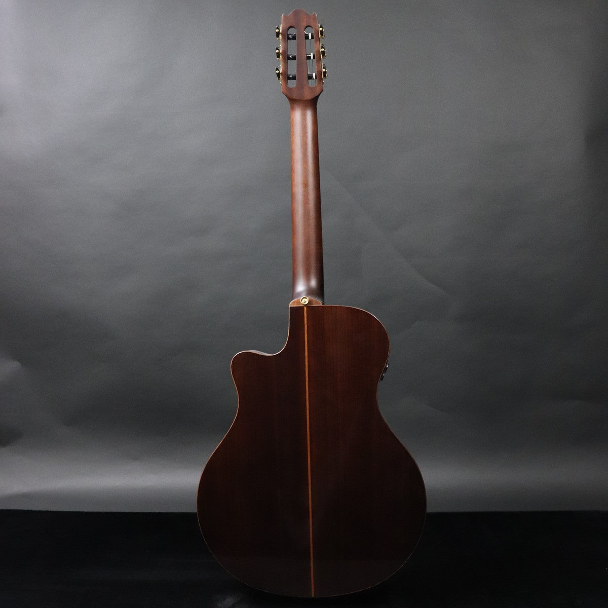 指板幅が狭く握りやすく細めのネックに、低めの弦高設定を採用し、エレキギタープレイヤーにも弾きやすい薄胴ボディで14フレットジョイント。