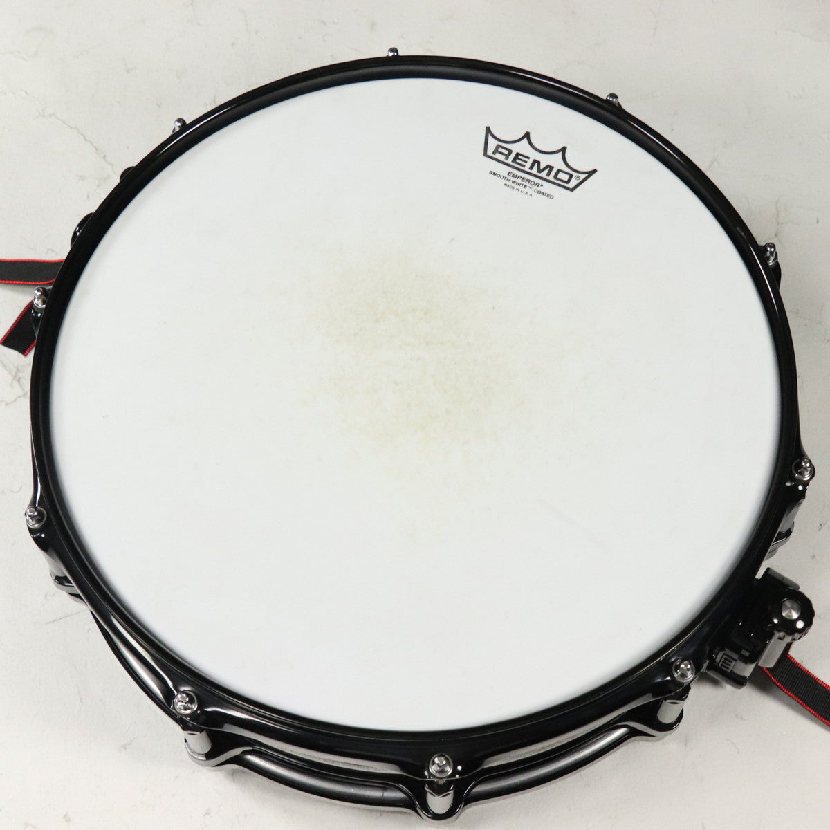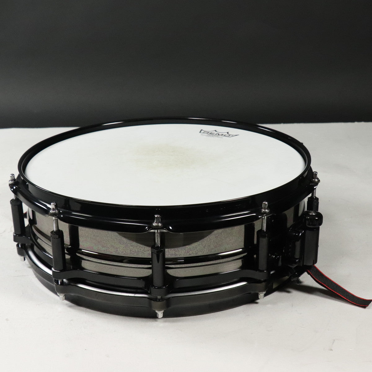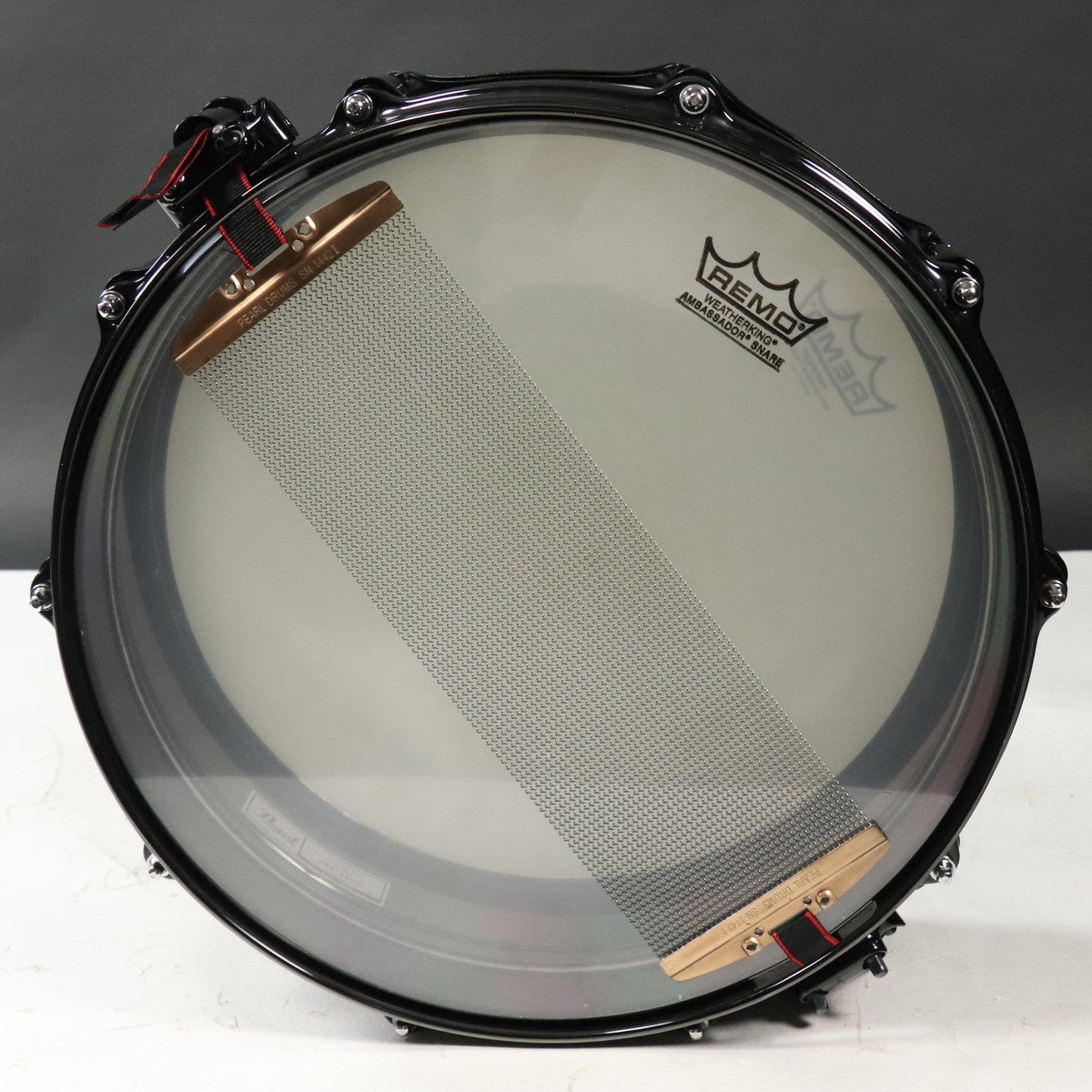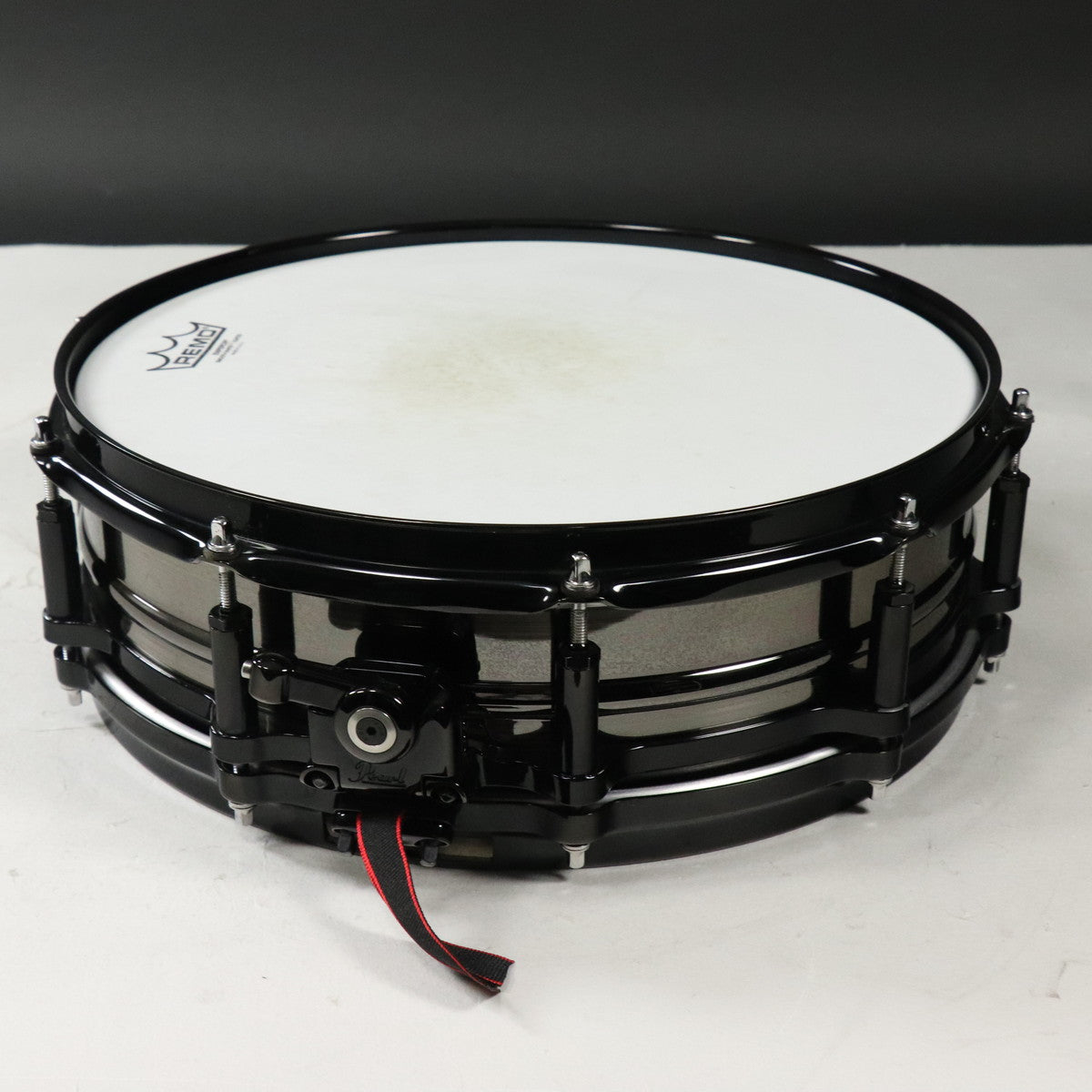 The Pearl FBS1445/B is part of the "buzz" series of metal snares supervised by D'ERLANGER drummer Tetsu. 1.5mm thick black nickel-finished brass shell and free-floating construction bring out the full richness of the shell's original sound.