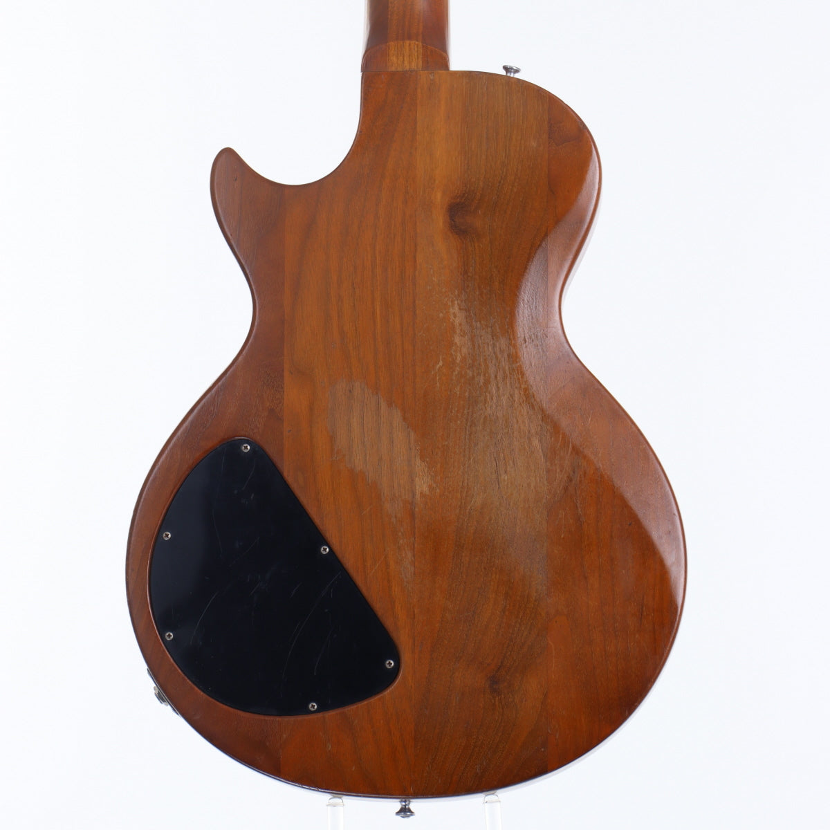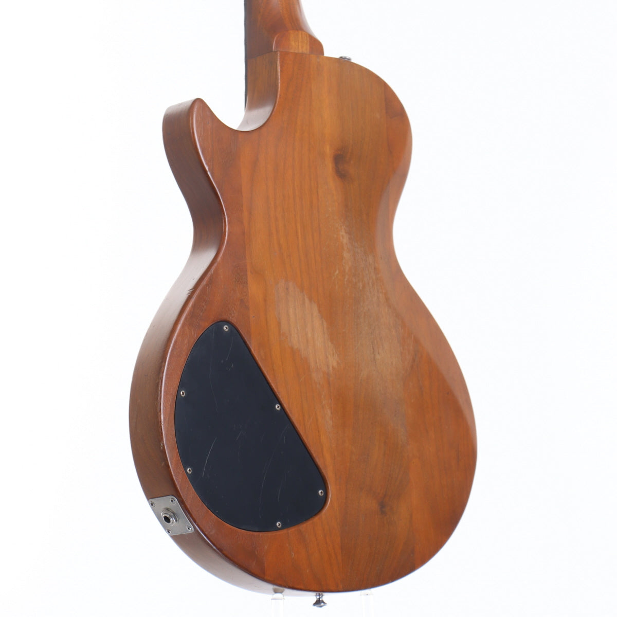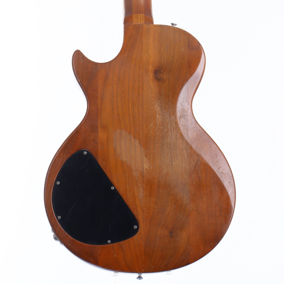 その最大の魅力はウォルナットを贅沢に使用した、アッパークラスの材に似た高級感がありながらも控えめな外観にあります。ボディとネックがセットネック構造のウォルナット、指板にはエボニーを採用し、見た目もサウンドも“自然な木の響き”が際立つ仕上がりになっています。