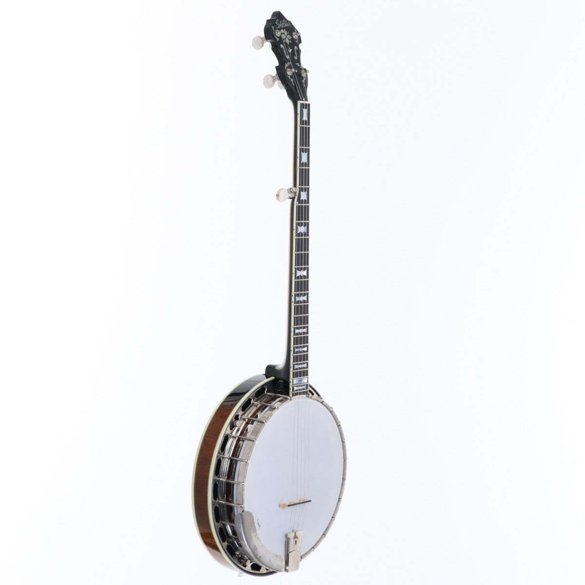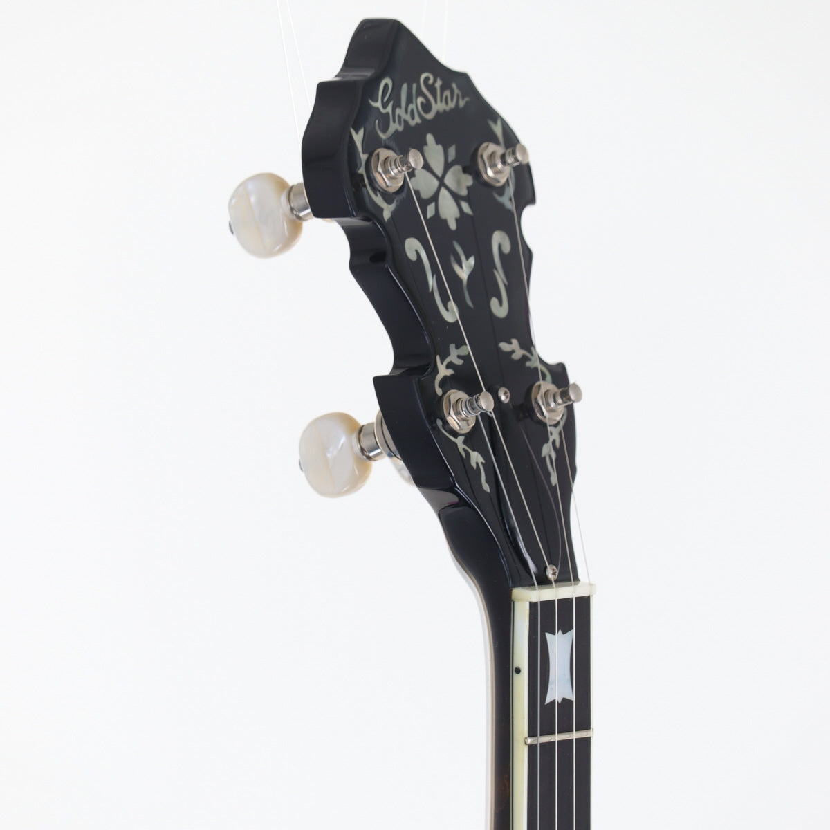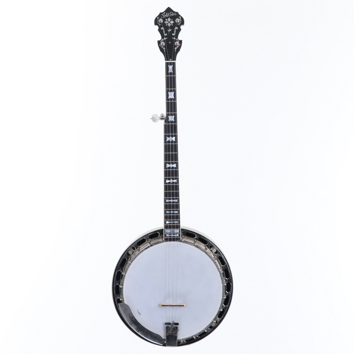 The Gold Star GF-200-1952 is a 5-string banjo based on the famous 1950s model. The distinctive Bow-Tie inlays and beautiful heart and flower decorations give it a traditional look, while the flame maple neck and resonator, 3-ply rock maple rim, and cast bronze tone ring give it a powerful, warm sound that will captivate players. This is a long-loved instrument with a reliable sound that can be used for a wide range of music from bluegrass to old-time.