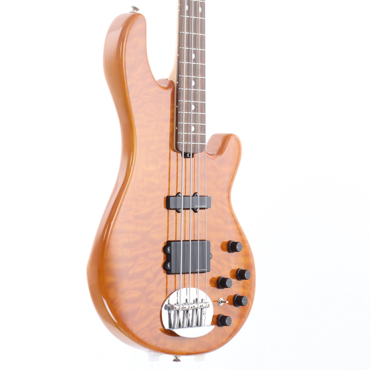 The LAKLAND SK-4DX is a 4-string electric bass that offers a bright, clean tone and a wide range of sound makeup. The alder wood body is combined with a quilted maple top for an elegant and beautiful finish. Equipped with a jazz bass type single coil on the front and a humbucker on the rear, the 3-band EQ built-in preamp and coil tap function of the rear pickup allow you to freely manipulate a wide variety of tones.