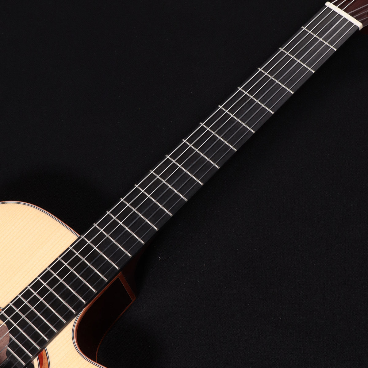 指板幅が狭く握りやすく細めのネックに、低めの弦高設定を採用し、エレキギタープレイヤーにも弾きやすい薄胴ボディで14フレットジョイント。
