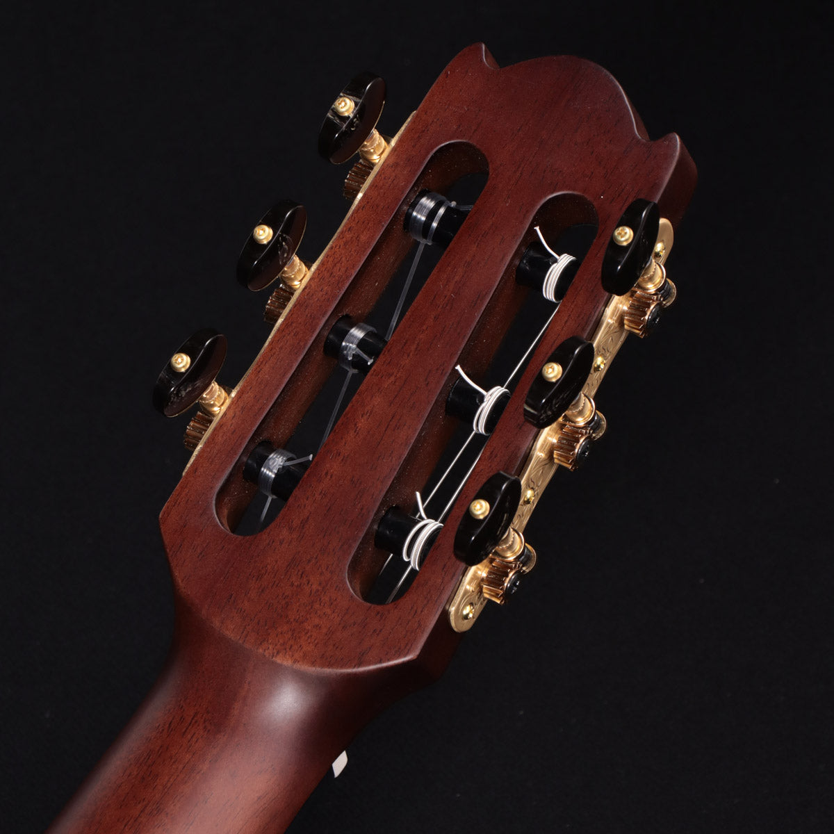 アンダーサドルピックアップで弦の振動を、表板裏面のコンタクトセンサーピックアップで表板の鳴りを、ボディ内部に装着されたマイクでギター胴内の空気感をそれぞれ集音します。3つの音を組み合わせることで、幅広いダイナミクスとプレイヤーの繊細な指の感触に応え、自然なナイロン弦サウンドをラインアウトします。