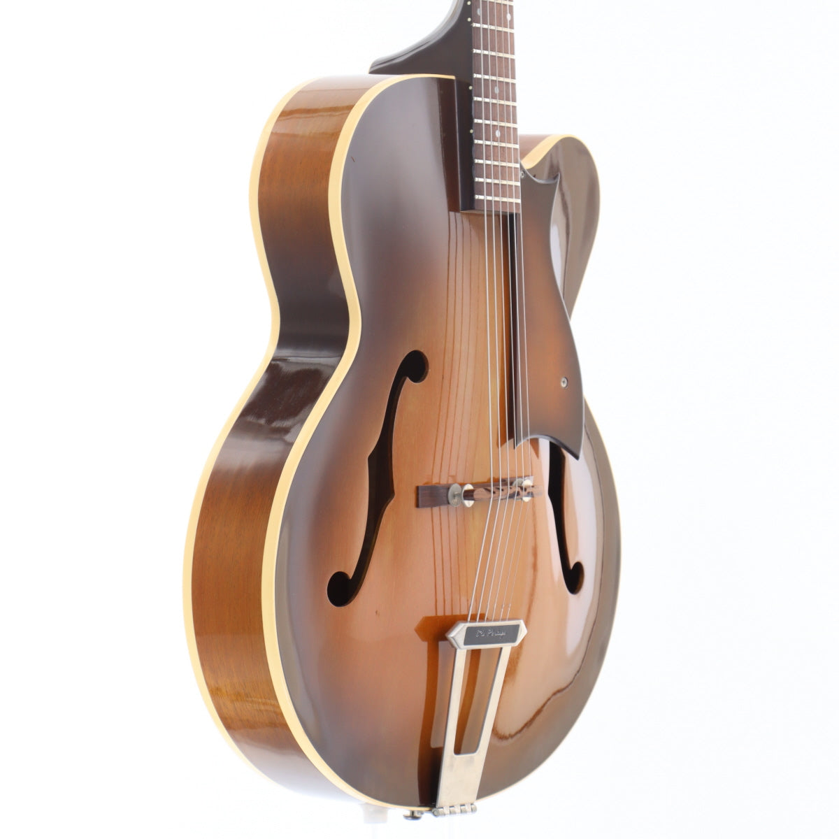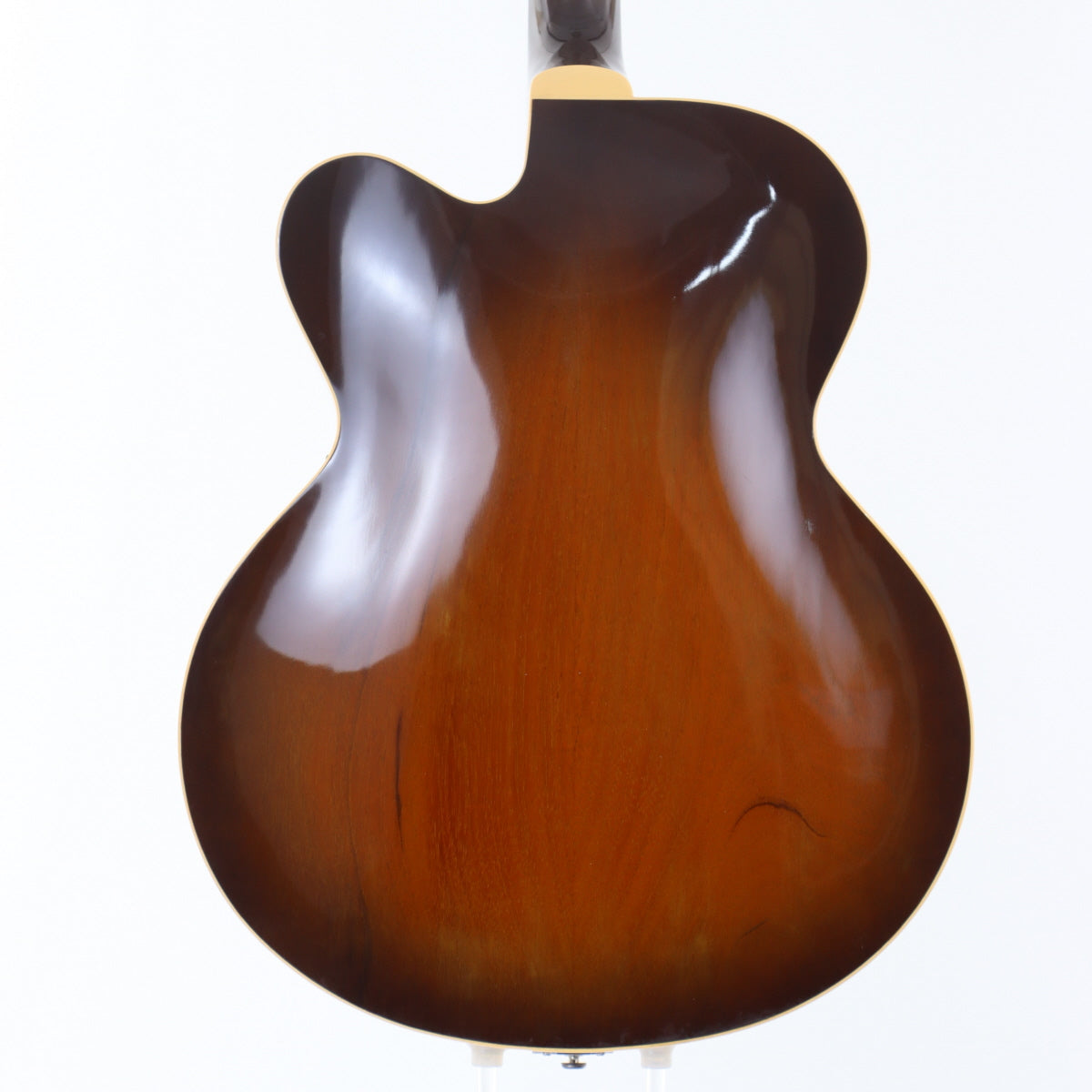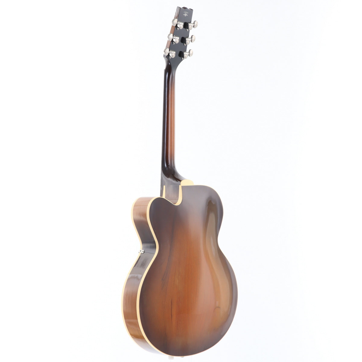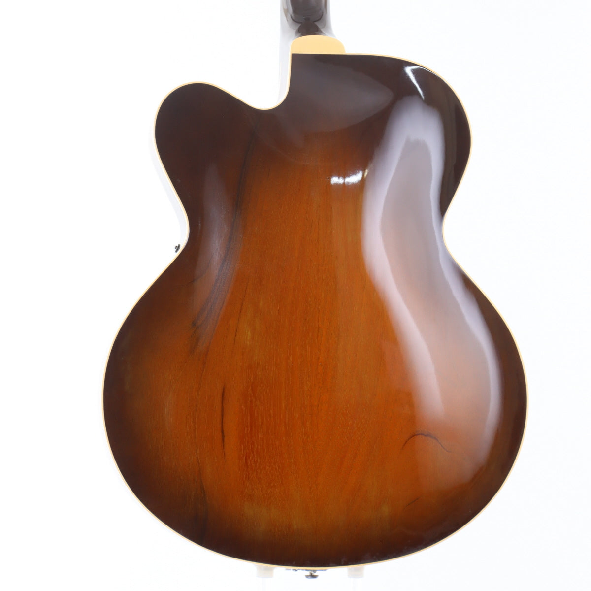 ピックアップが搭載されていない所謂”ピックギター”ですが、生音での枯れたサウンドはジャズやブルースを爪弾くスタイルに最適です。