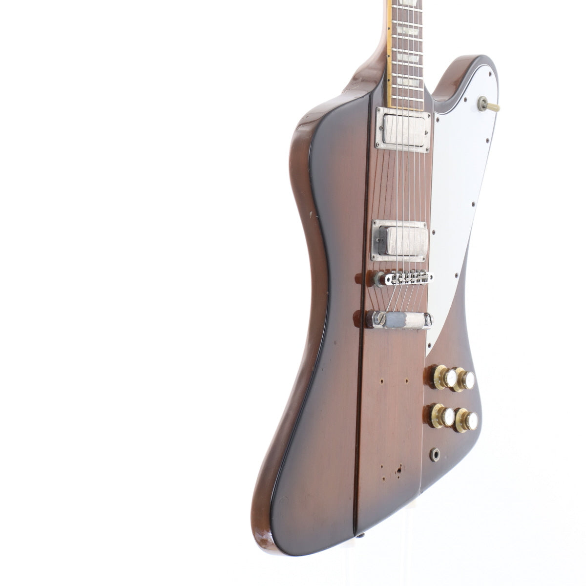 The pickguard has been replaced with a non-original part, as there are no marks of firebird emblems on the pickguard.