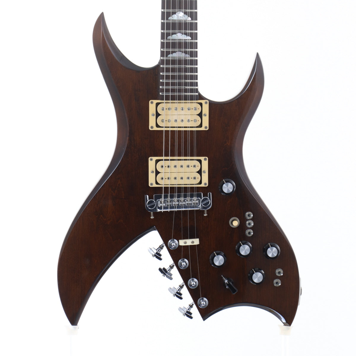 From the 1970s to the 1980s, various domestic brands produced and sold copies of the B.C. Rich, but this particular model is a reproduction of the Bich 10-string by Aria Pro II.
