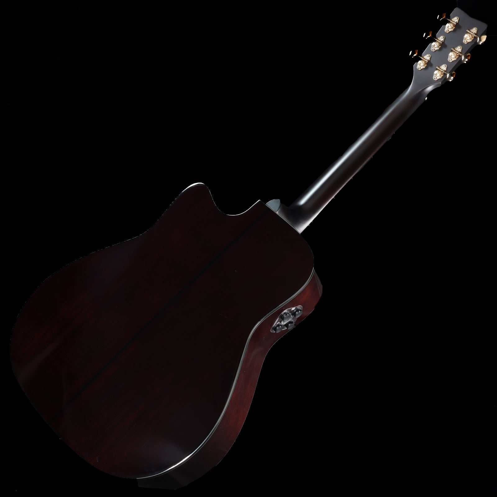 表板にシトカスプルース(ソリッド)、側裏板にマホガニー(ソリッド)を採用。カッタウェイの入ったドレッドノートスタイルのボディは、パワフルなストロークに応えつつ高い演奏性も実現。シャンパンゴールドで統一されたハードウェアやサウンドホールの外周に施された美しいインレイなどのスタイリッシュなデザインも特?。 また、より大音量で?時間演奏(最大 5 時間半)できるようにトランスアコースティックギターとして初めてリチウムイオンバッテリーを内蔵。アンプとつなぐことでエレクトリックアコースティックギターとしても演奏でき、ライブステージでもご使用いただけます。