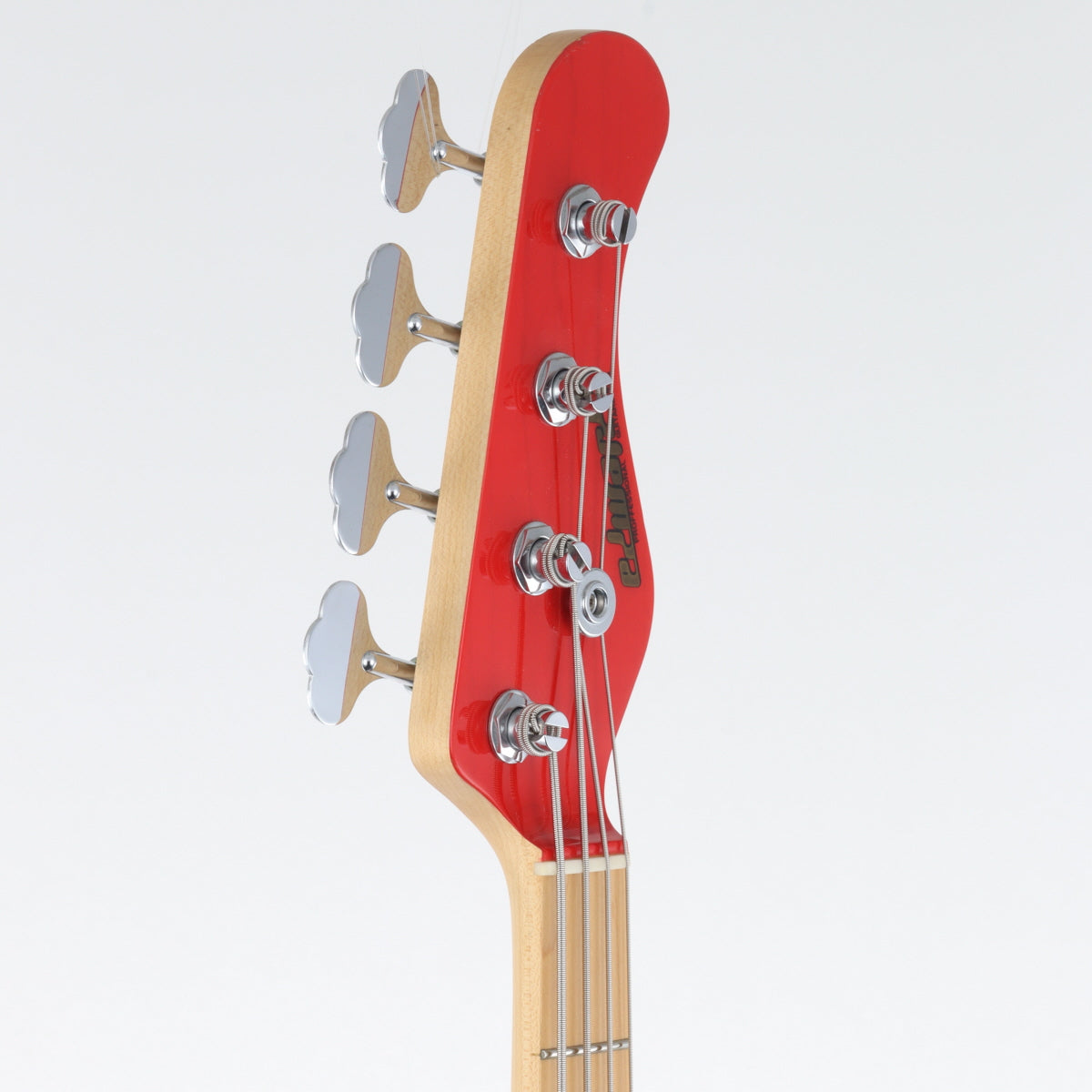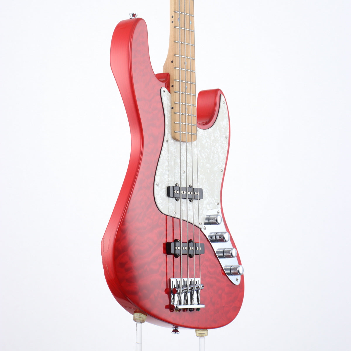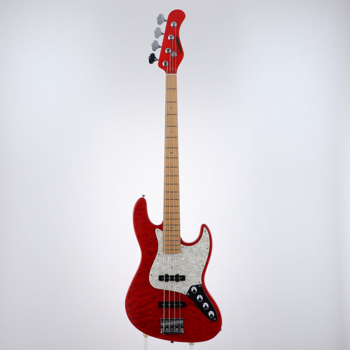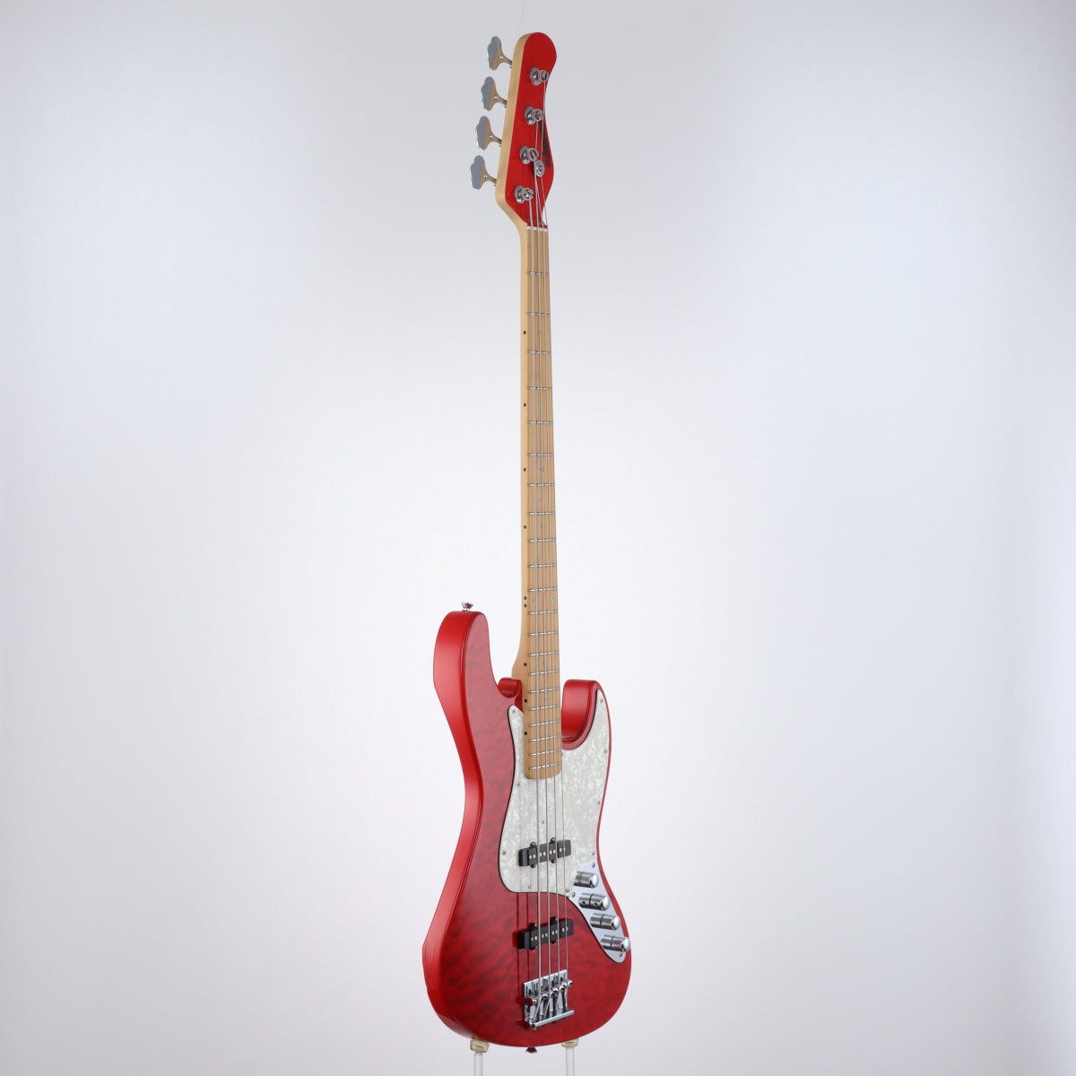 キルトトップのアッシュボディ、メイプルネック、メイプル指板21フレット、JJピックアップレイアウト、アクティブサーキットを搭載した2バンドEQを採用しています。