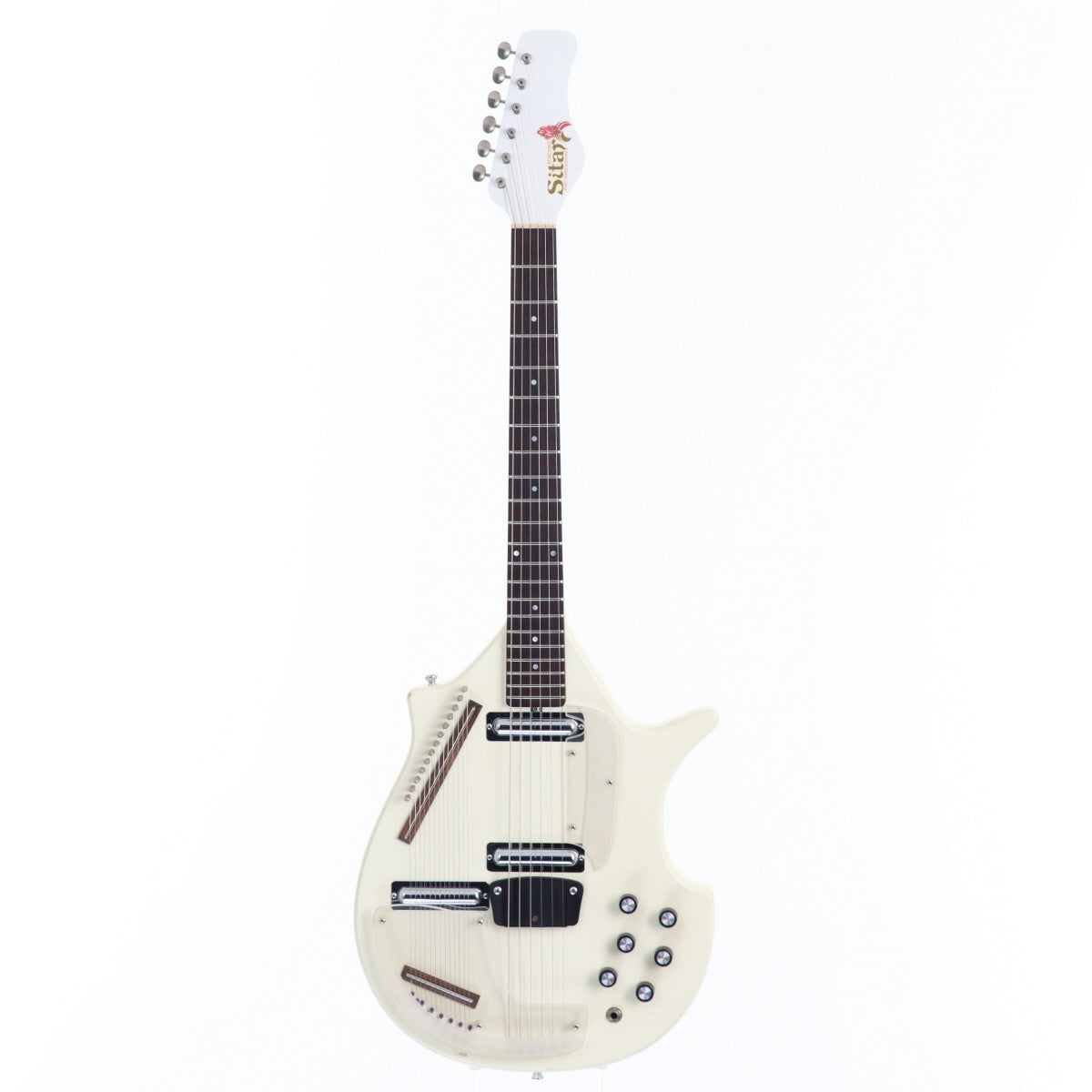 ジェリー・ジョーンズの中でも、ロング・ホーンのダブル・ネック・モデルと並んで人気が高く、多くのギタリストにも愛用されてきた“Colral Sitar”の再現モデル。