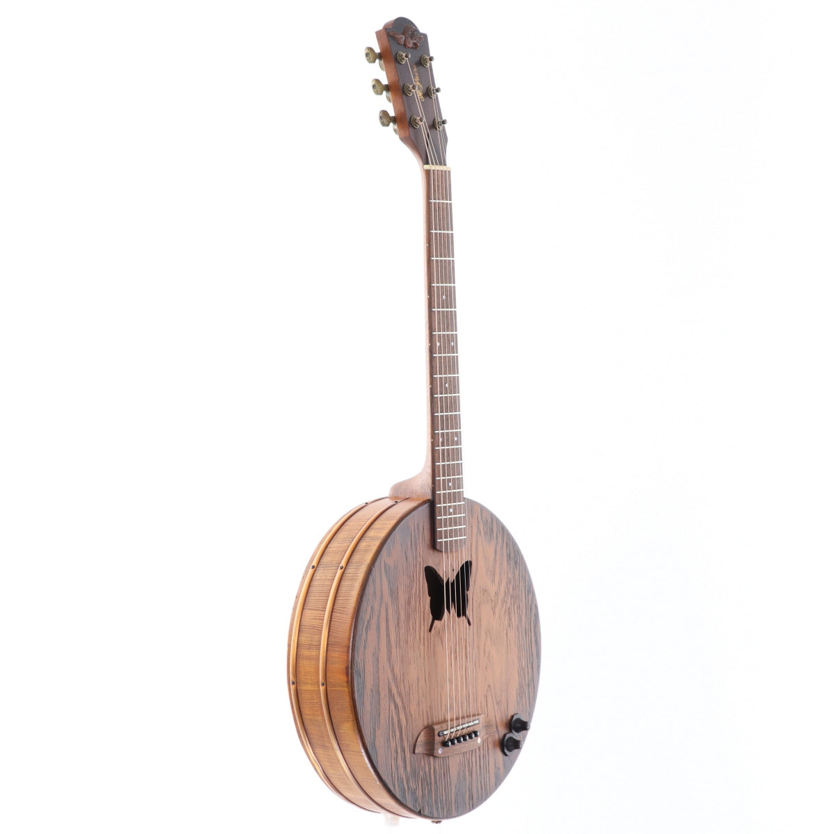 フィンガーボードとブリッジにローズウッドが使われており、独特のシェイプから奏でる枯れたサウンドは唯一無二です。