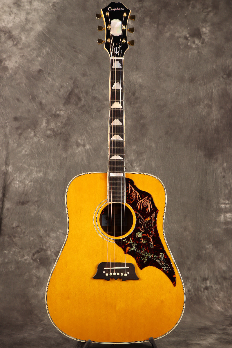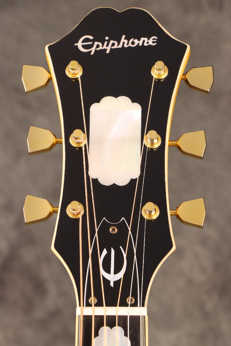 こちらは、近年復刻されたEpiphone Masterbilt シリーズの1つで、シトカ・スプルースTop、オヴァンコールSide/Backのオールソリッドボディによるレンジの広いサウンドが特徴です。
